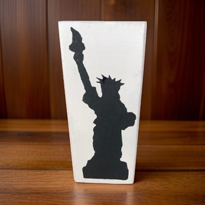 - One (1) 4"x8"x2" wood blocks painted vintage white with a black silhouette of the Statue of Liberty