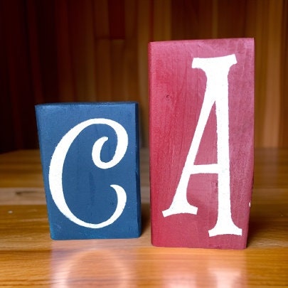 - One (1) 4"x5"x2" wood blocks painted navy with a cream letter "C"