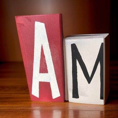 - One (1) 4"x7"x2" wood blocks painted red with a cream letter "A"