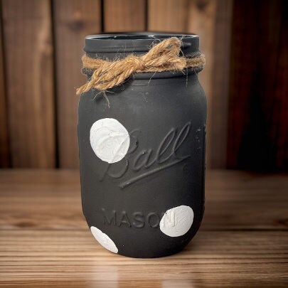- Two (2) regular mouth pint-sized mason jars painted black with white polka dots